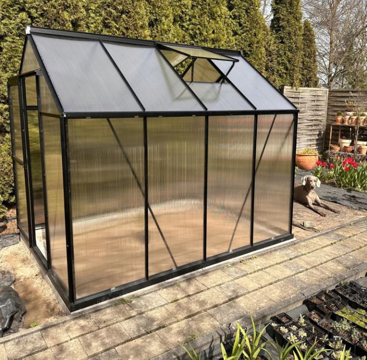 Szklarnia stanowi solidną konstrukcje, którą w prosty sposób można złożyć. Jest bardzo praktyczna, a czarny kolor pasuje do każdego ogrodu. Złożona prawidłowo jest mocna i stabilna. Plusem jest użycie poliwęglanu, który chroni rośliny i przepuszcza światło. Polecam.